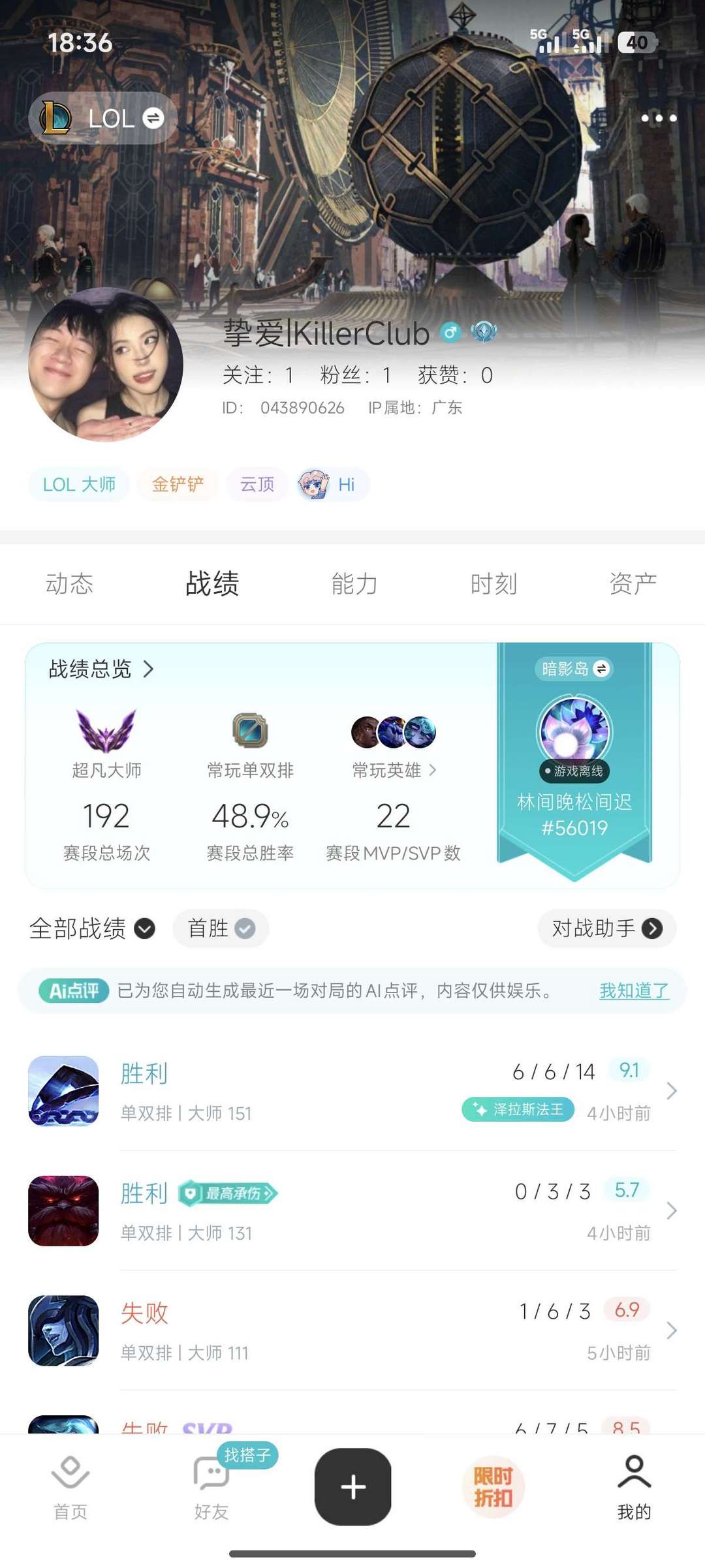 段位:560级 超凡大师