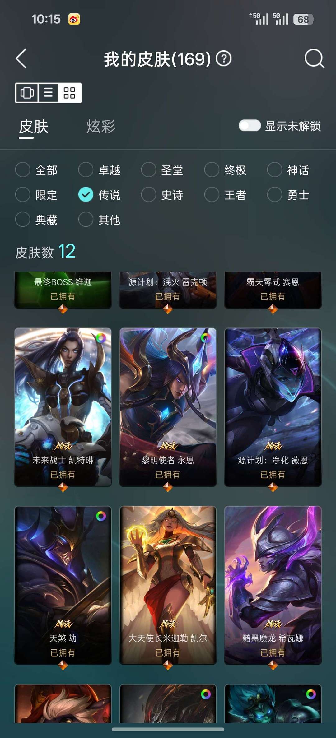 全英雄 15个限定皮肤 12个传说皮肤 35个史诗皮肤