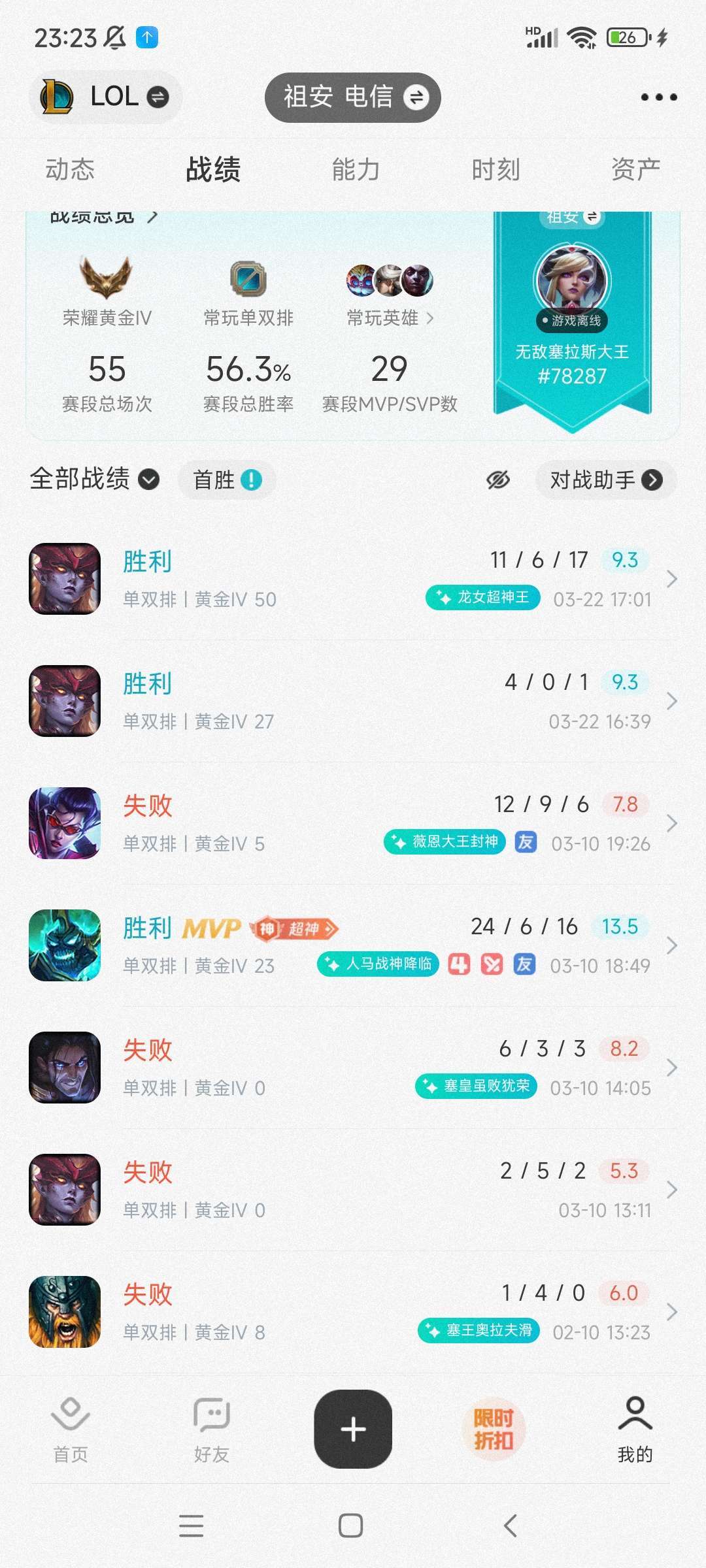 段位:107级 荣耀黄金II
