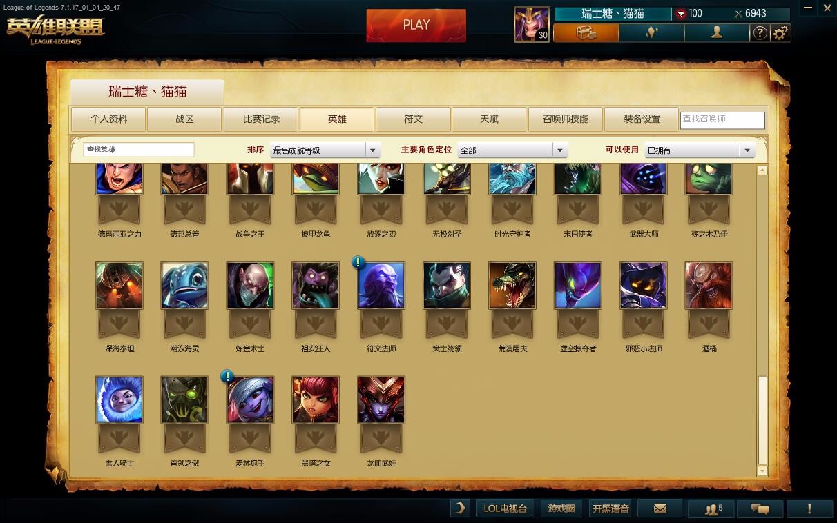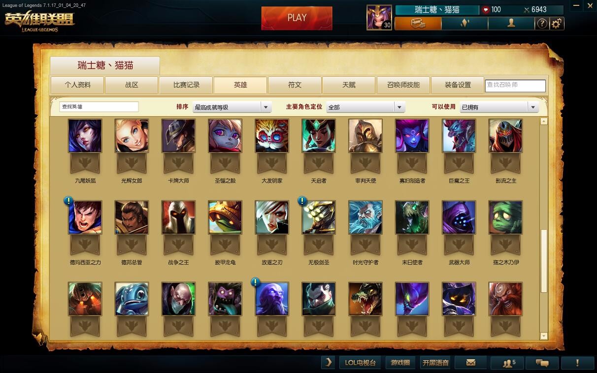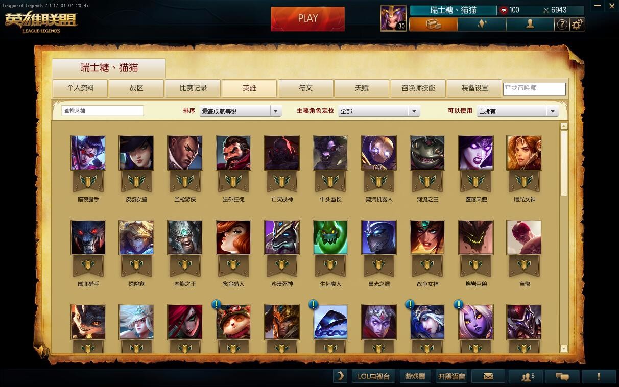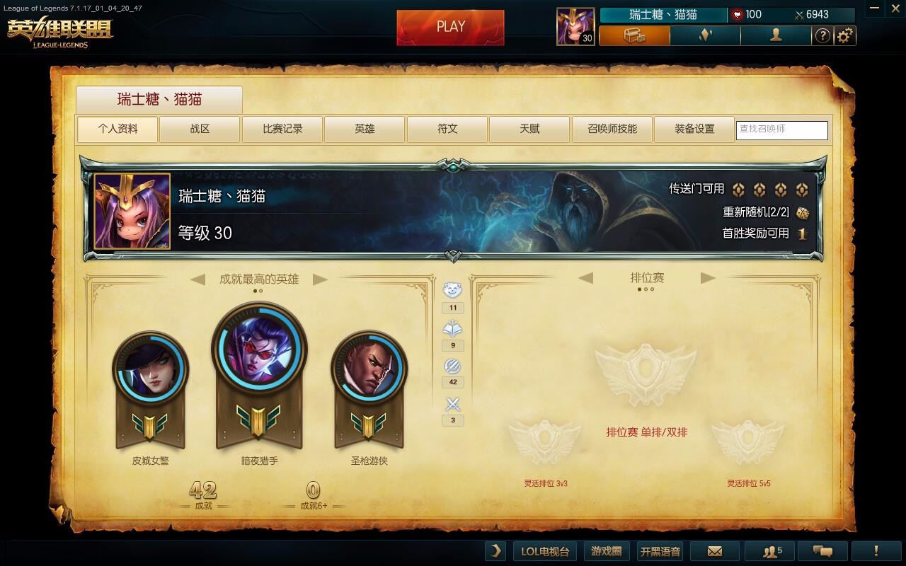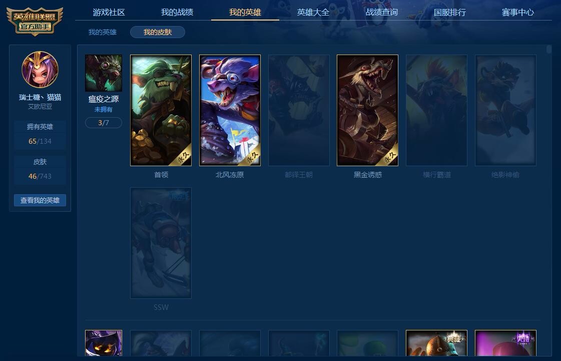 角色等级 30 英雄数量 65 皮肤数量46 无段位