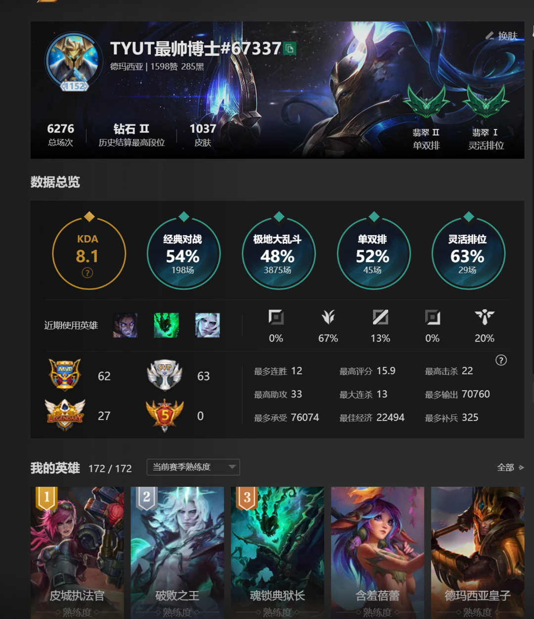 段位:1152级 流光翡翠II级 流光翡翠II
