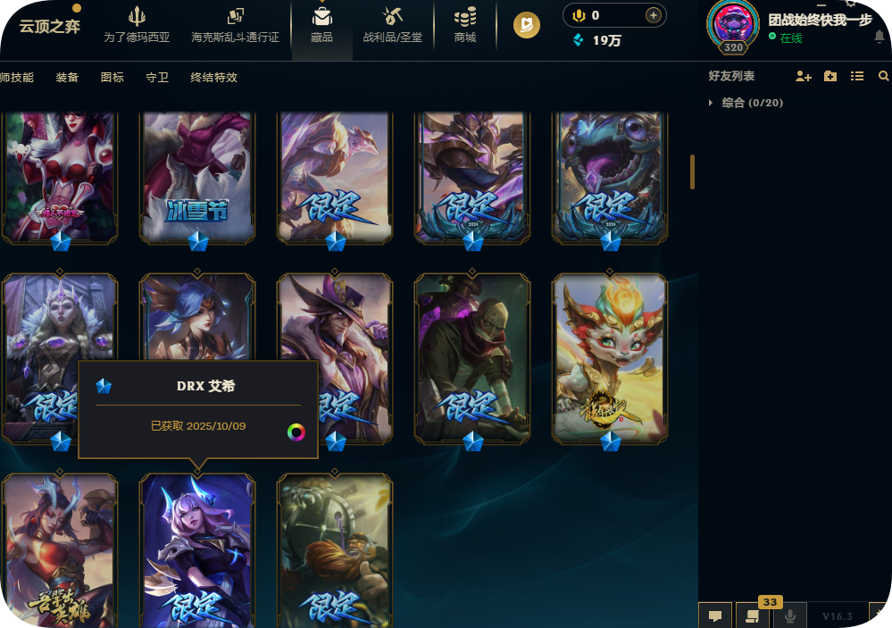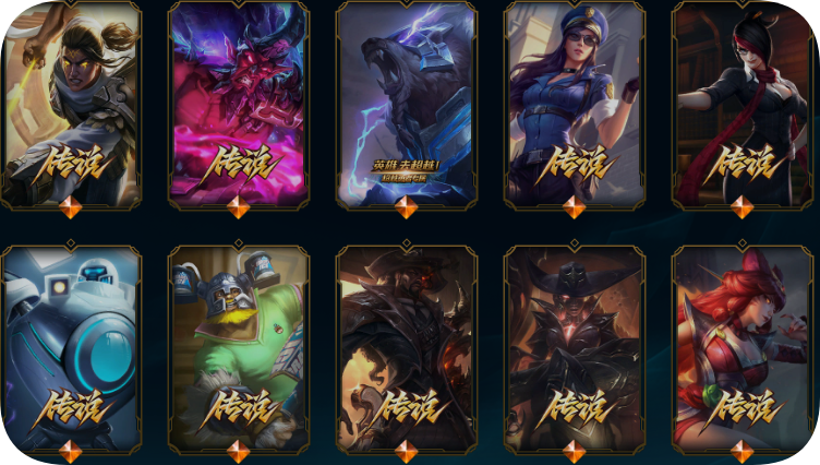 600皮肤满英雄可排位龙马烈焰波比赵云KDA卡莎DRX艾希冠军酒桶男爵瑞兹西部卢娜耀星拉克丝至高之拳