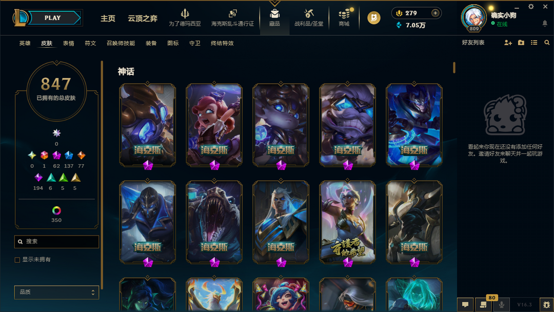 装备描述:~~出现异常~~多登入几次即可 ~~喜欢记得收藏~~可排位~~1600皮全英雄丨847原皮397炫彩丨62神话/至臻/海克斯丨EDG套丨FPX套丨IG卡莎丨玉剑男刀丨莲华永恩莉莉娅~~租之前尽量查一下游戏ID,确保段位是您需要,避免浪费您的时间~~请勿挂机逃跑故意送人头,谢谢合作,谢谢~~