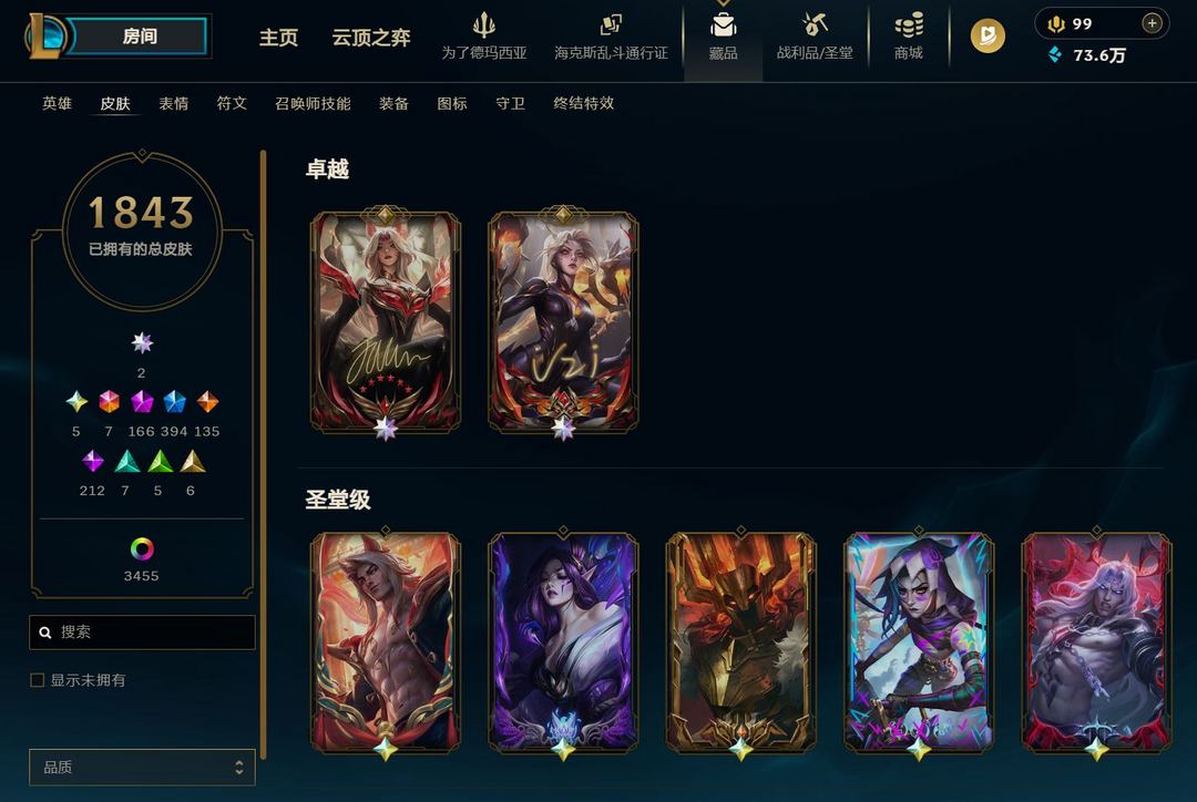 ❤️艾欧1830+3500❤️全圣堂佛耶戈龙王❤️全神话❤️神话剑圣❤️新皮新炫秒更❤️大师成就