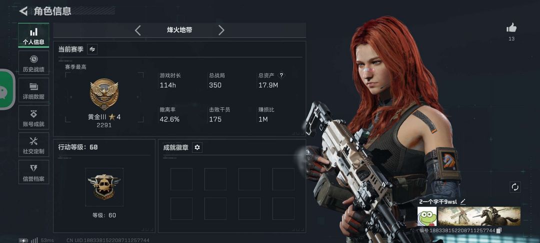 皮肤号 千万哈夫币,号上还有六套还有九十万m7很多装备低强度低kd,全地图开放,强度低,护航优质选择