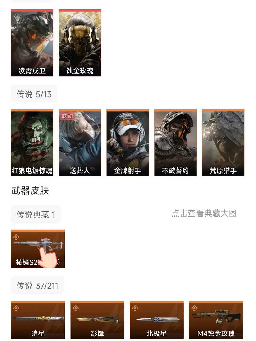 皮肤号 北极星暗星蝴蝶刀凌霄戍卫,棱镜s2典藏,蚀金玫瑰,s8赛季3×3保险