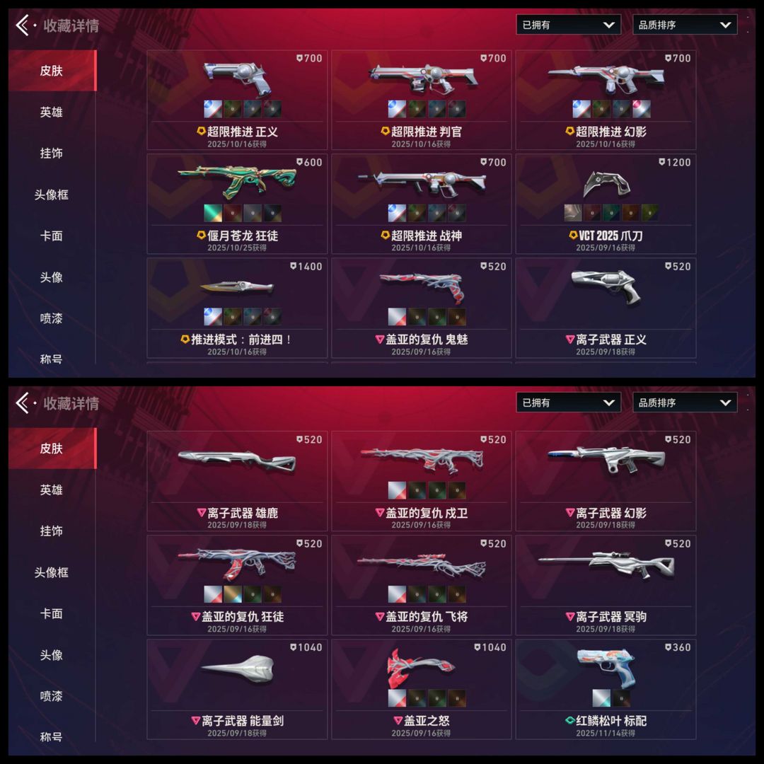 VCT爪刀满特效✅超限套炫彩幻影满特效✅盖亚套✅离子套幻影冥驹正义满特效✅偃月苍龙满特效