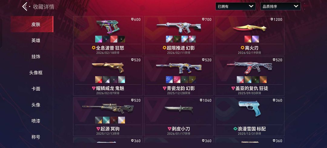 ❤️离火刃❤️剥皮小刀❤️超限幻影❤️青瓷幻影❤️威龙鬼魅❤️全息狂怒❤️起源冥驹❤️盖亚狂徒