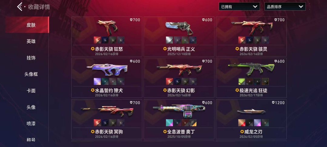 29级收藏家 VCT2025爪刀 赤影天骁全套 耀鳞威龙全套 水晶誓约獠犬 极速光追狂徒 全息波普奥