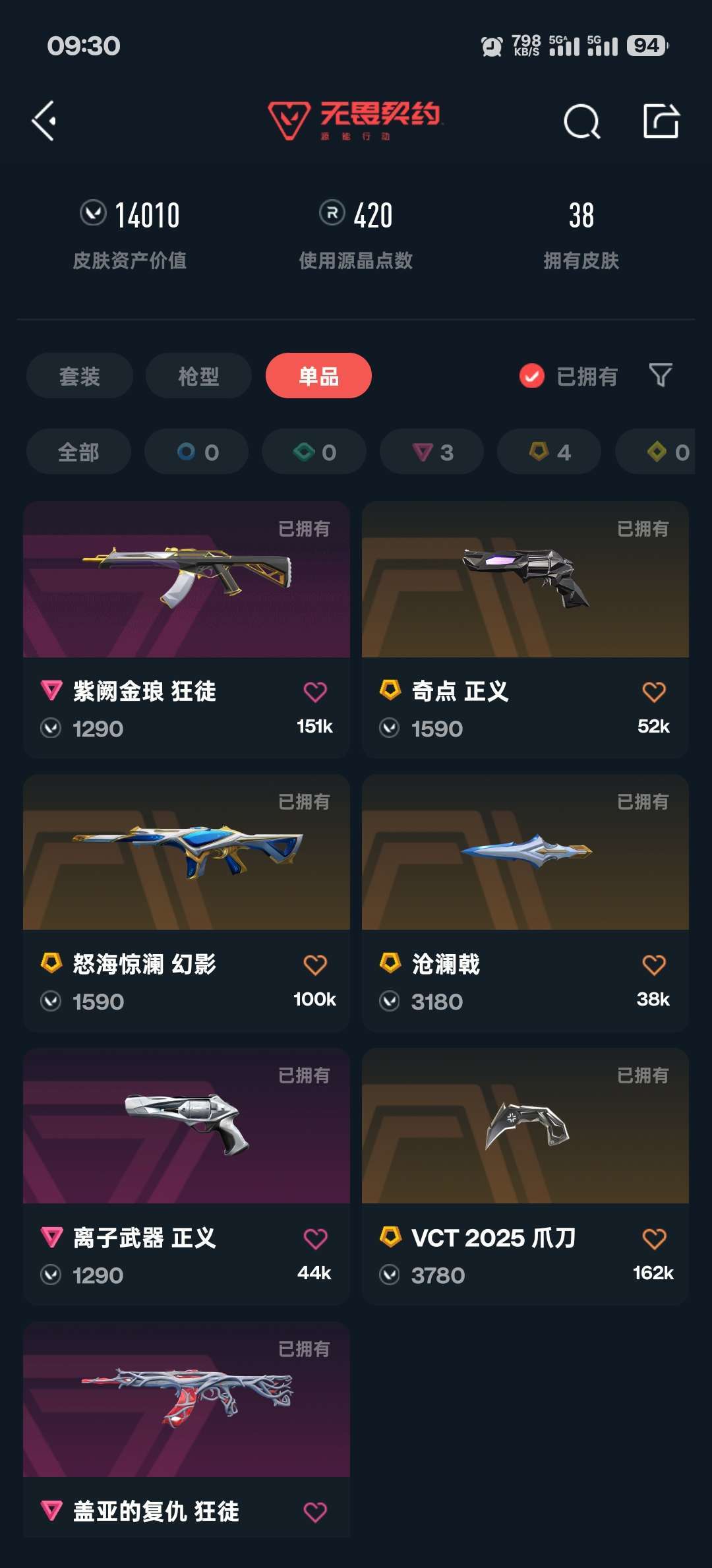 瓦手极品账号VCT25限定爪刀,紫金,盖亚,奇点详情可看图