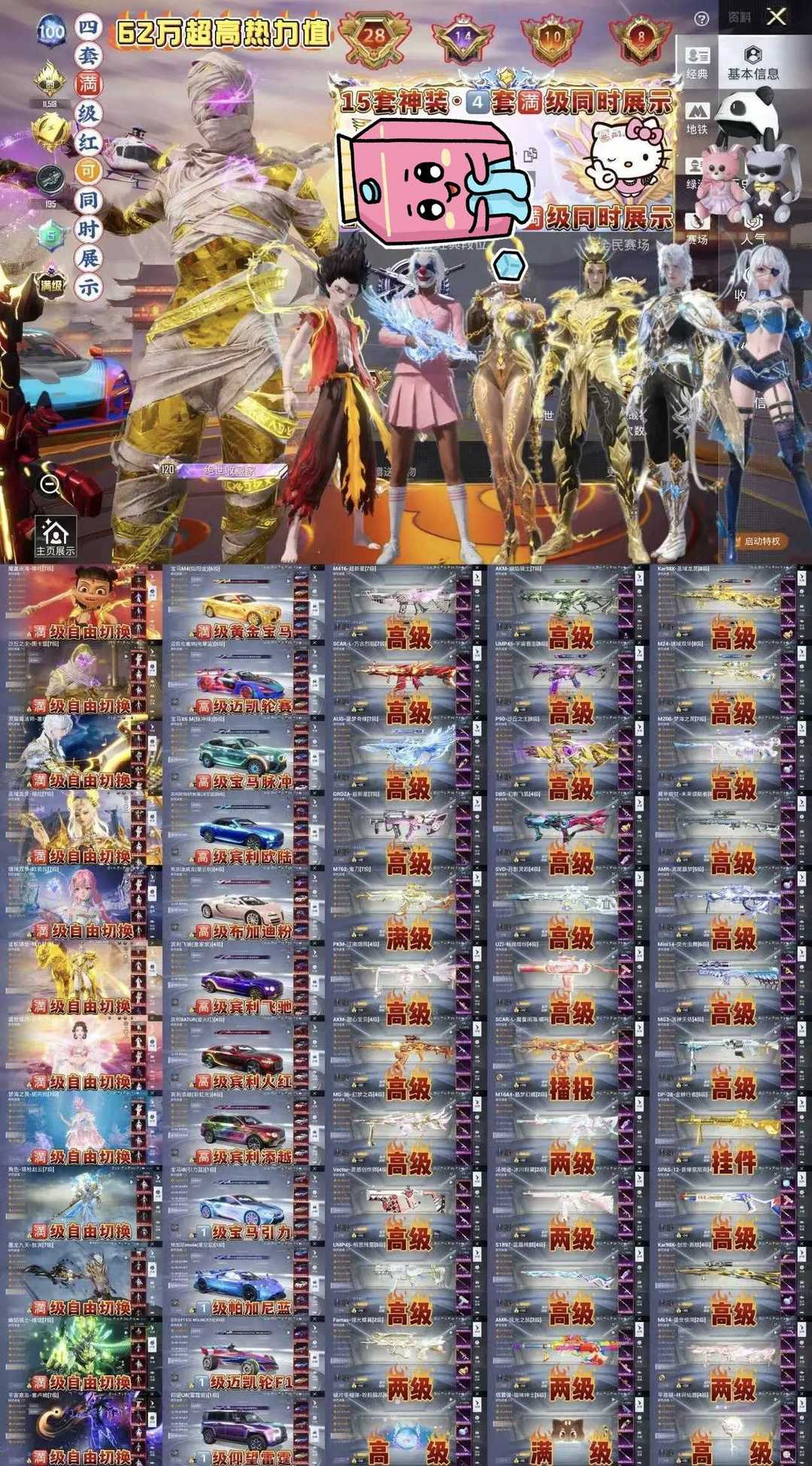 4套满级红装新满红百变纱华⛎老101狼王8辆满级车15把满级枪 145粉99枪44车⛎高印记62万热