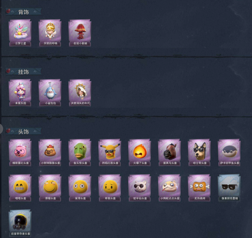 装备描述:一单一结 不顶号 全交给平台改密码别来搞心态!!! 抓住平台拉黑账号【段位】王牌 【幻梦皮肤数量】0 【金色皮肤数量】1 【紫色皮肤数量】4 【道具皮肤数量】13 【累充】8180 【赛季魔盒】普通魔盒 【员工】小黄、爱丽丝、零、阿念、逍遥、薇薇安、巫铃儿、莉莉、艾伦、爱德华、兰 【金色皮肤】薇薇安-圣光之谕 【紫色皮肤】薇薇安-黑月挽歌、阿念-王子与骑士、小黄-霓裳踏雪、爱丽丝-丝缕哀歌 【道具皮肤】长鞭-小狗蛇点点鞭、摸金符-祝祷词、桃木剑-永眠曲、音响-鸣沙鼓、刺刀-小鲨匕首、转轮手枪-新星时代、铲子-圣心之泪、短管猎枪-赞萌露比水枪、音响-happy猫、短管猎枪-星光的裁决、摸金符-花落精绝、桃木剑-最后的独角兽、腰包-宝剑八 【头饰】精致露比头套、小财神豚豚头套、鱼头怪头套、烈焰红唇头套、火爆了头套、面具马头套、哈士奇头套、萨卡班甲鱼头套、嘻嘻头套、滑稽头套、呆滞头套、卑微头套、驼半仙头套、小狗蛇点点头套、炙热烧烤、像素朋克墨镜、后室幸存者头套 【背饰】云梦之星、天使的呼唤、在逃小新娘 【挂饰】未竟乐园、小鲨包包、天使消失的年代 【动作】七仔摇、心跳摇、舞台中心、山楂树之舞、