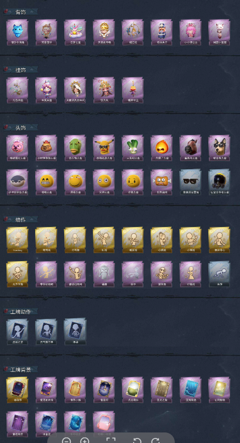 装备描述:巫铃儿-镜生遗梦 【金色皮肤】小黄-遗失的童话、巫铃儿-镜花辞 【紫色皮肤】莉莉-莓果陷阱、莉莉-除妖小师妹、阿念-王子与骑士、艾伦-水王子、爱丽丝-冰公主、薇薇安-白光莹、逍遥-泽引山海、阿念-灵昭鹿鸣、爱丽丝-瑞羽衔春、小黄-霓裳踏雪、零-青云逸歌、巫铃儿-素影瑶光、爱丽丝-丝缕哀歌、逍遥-绣春逍影、小黄-呱呱雨衣 【道具皮肤】长鞭-小狗蛇点点鞭、黄牛能量饮料-青玉抱丹、急救包-蔷薇物语、刺刀-小鲨匕首、专业手电-云端梦想计划、摸金符-花落精绝、夜视仪-金丝眼镜、音响-鸣沙鼓、短管猎枪-星光的裁决、电击枪-甜蜜泡泡枪、葫芦-伏妖塔、铲子-龙鳞、刺刀-碧络琅环、桃木剑-凤鸣九天、腰包-月下莲台、传送按钮-幻宠之门、转轮手枪-新星时代、桃木剑-最后的独角兽、传送按钮-昆仑镜、黄牛能量饮料-珍珠芭乐莓莓、额外的背包-飞花令、夜视仪-心跳眼镜、腰包-宝剑八、音响-happy猫 【头饰】精致露比头套、小财神豚豚头套、鱼头怪头套、烈焰红唇头套、大葱明头套、火爆了头套、面具马头套、哈士奇头套、萨卡班甲鱼头套、嘻嘻头套、滑稽头套、呆滞头套、卑微头套、炙热烧烤、像素朋克墨镜、后室幸存者头套 【背饰】