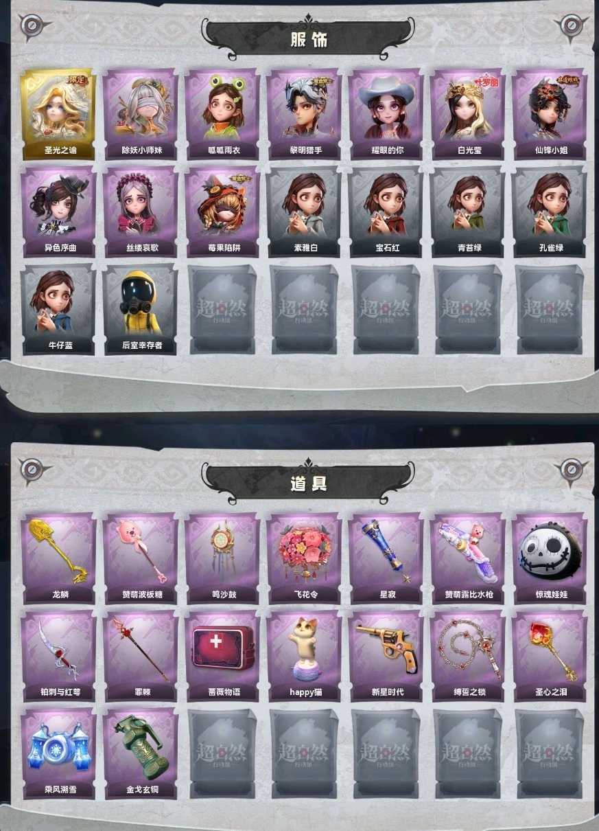 1金♉9紫♉圣光之谕♋莓果陷阱♋除妖小师妹⛎仙锋小姐⛎白光莹♑异色序曲♑黎明猎手♉赞萌露比水枪♉罪棘