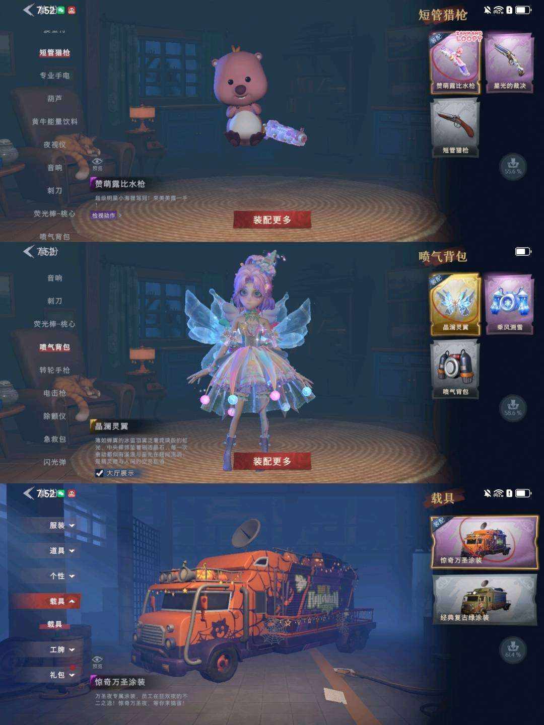 装备描述:【幻梦皮肤】巫铃儿-镜生遗梦 【金色皮肤】零-渡鸦公爵、逍遥-莲华渡、薇薇安-圣光之谕、小黄-遗失的童话、巫铃儿-镜花辞 【紫色皮肤】零-搬开山、薇薇安-仙锋小姐、爱丽丝-甜梦派对、艾伦-绒绒对决、莉莉-莓果陷阱、莉莉-除妖小师妹、薇薇安-黑月挽歌、阿念-王子与骑士、莉莉-情公主、逍遥-泽引山海、零-青云逸歌、爱丽丝-丝缕哀歌、逍遥-绣春逍影、小黄-呱呱雨衣 【道具皮肤】喷气背包-晶澜灵翼、夜视仪-心跳眼镜、摸金符-紫霄、短管猎枪-星光的裁决、急救包-蔷薇物语、刺刀-紫气东来、转轮手枪-新星时代、腰包-宝剑八、传送按钮-昆仑镜、桃木剑-凤鸣九天、桃木剑-绯色遗证、音响-鸣沙鼓、铲子-龙鳞、传送按钮-幻宠之门、摸金符-祝祷词、音响-happy猫、喷气背包-乘风溯雪、黄牛能量饮料-青玉抱丹、传送按钮-逆时审判、急救包-末章心跳、刺刀-碧络琅环、黄牛能量饮料-珍珠芭乐莓莓、额外的背包-飞花令、短管猎枪-赞萌露比水枪、电击枪-甜蜜泡泡枪、桃木剑-永眠曲、长鞭-小狗蛇点点鞭、铲子-圣心之泪、专业手电-云端梦想计划、摸金符-花落精绝、桃木剑-最后的独角兽、腰包-惊魂娃娃、葫芦-伏妖塔、夜视