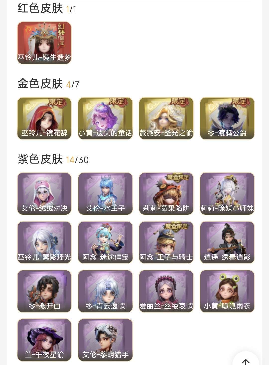 1红4金14紫 兔宝 幻梦镜生遗梦 耀世圣光之谕 遗失的童话 渡鸦公爵 镜花辞 叶罗丽 暗夜小恶魔