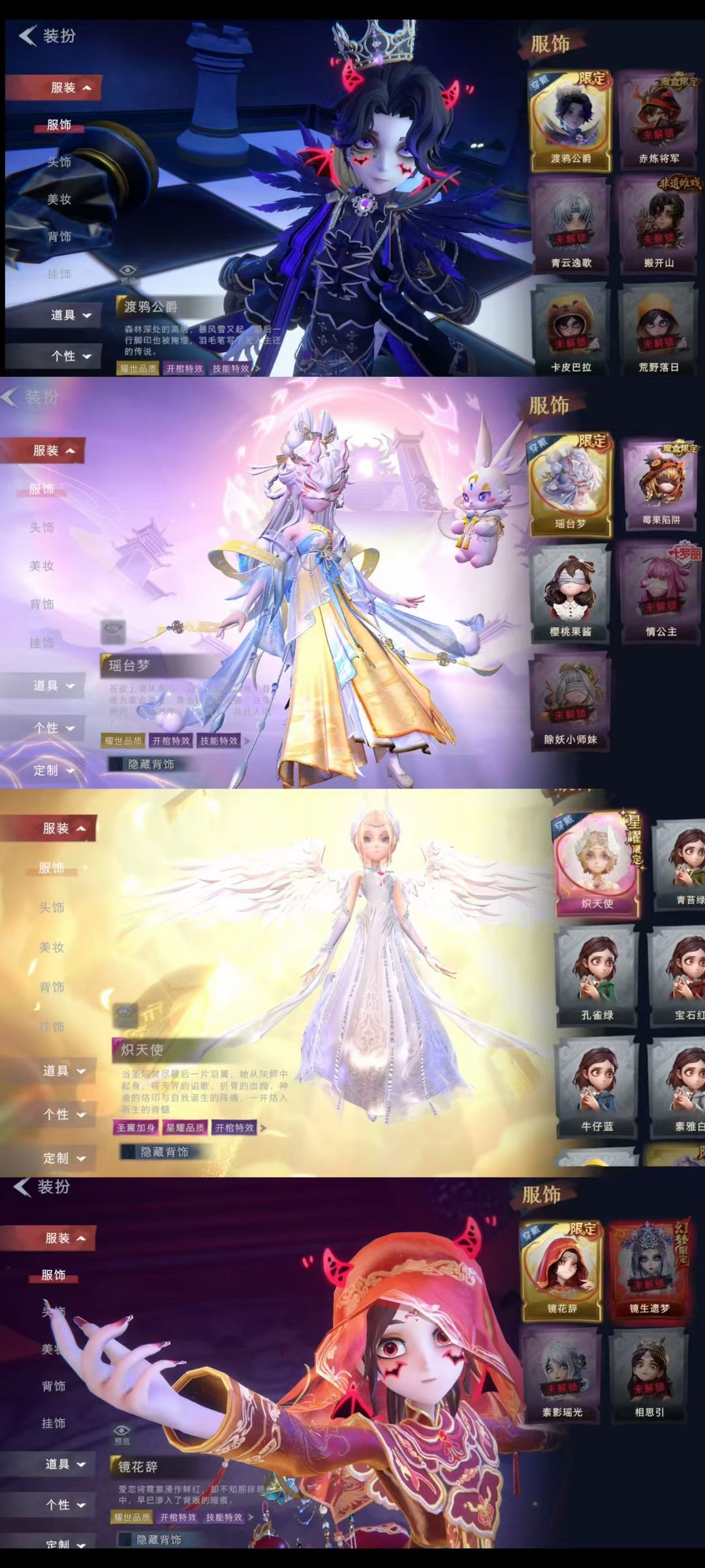装备描述:1星耀3耀世6紫炽天使渡鸦公爵镜花辞瑶台梦黎明猎手仙锋小姐耀眼的你甜梦派对草莓陷阱