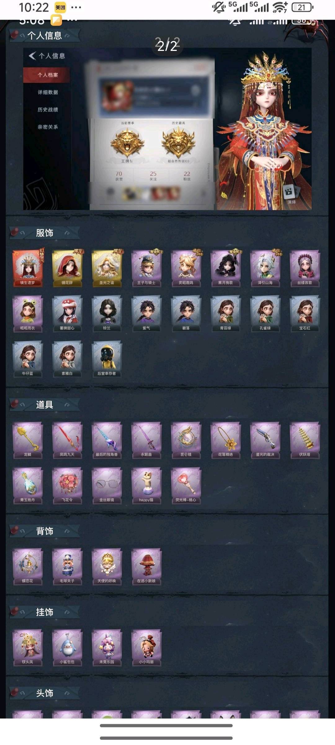 装备描述:红皮1金皮2紫皮6,道具皮13,巫铃儿-镜生遗梦,镜花辞 圣光之谕 泽引山海 王子与骑士