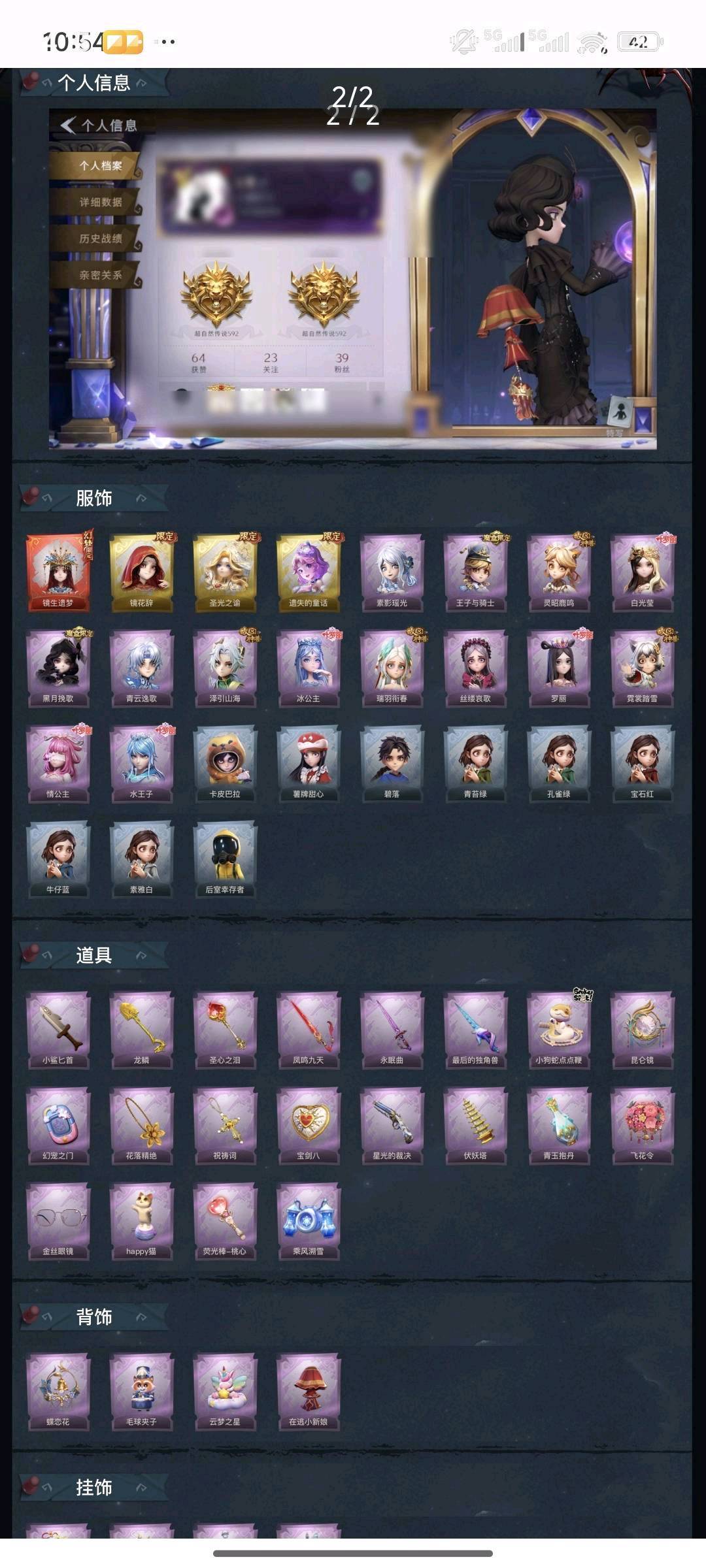 装备描述:1红3金14紫皮☆20饰品☆20道具☆镜生遗梦 泽引山海 圣光之谕 遗失的童话 镜花辞 情公主