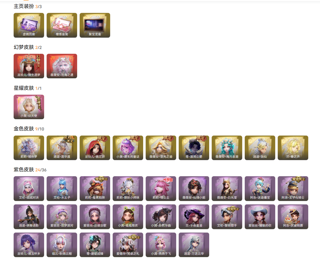 2红1星耀9金27紫皮/镜生遗梦/沧海之遗/炽天使/剑仙莲华渡 镜花辞渡鸦公爵/瑶台梦海月息潮春之声