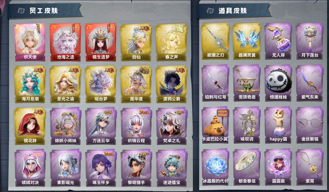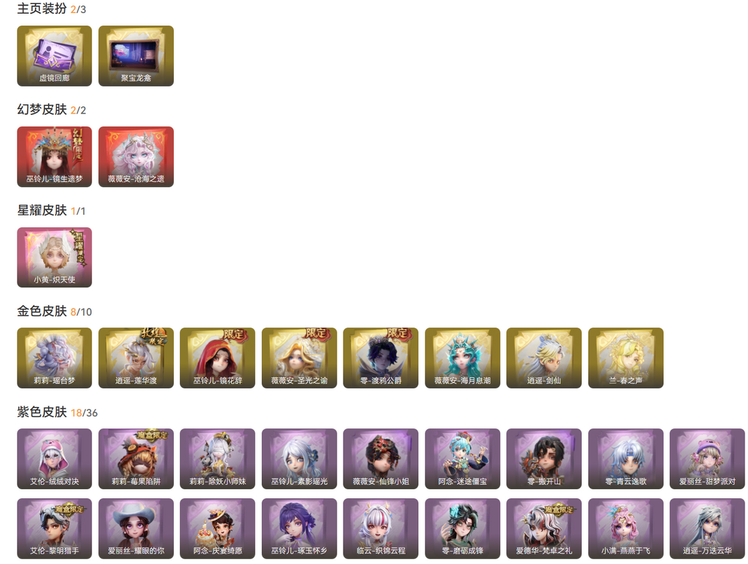 2红1星耀8金21紫皮/镜生遗梦沧海之遗炽天使/剑仙莲华渡圣光之谕渡鸦公爵瑶台梦春之声镜花辞海月息潮