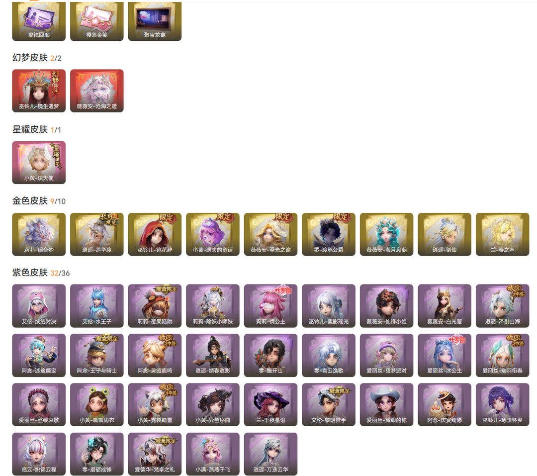 限制: 撤单率<68%才可租用此帐号装备描述:【满氪条2红1星耀9金34紫皮76道具】 星耀皮肤 小黄-炽天使 幻梦皮肤 巫铃儿-镜生遗梦、薇薇安-沧海之遗 金色皮肤 薇薇安-圣光之谕、小黄-遗失的童话、巫铃儿-镜花辞、逍遥-莲华渡、零-渡鸦公爵、莉莉-瑶台梦、逍遥-剑仙、薇薇安-海月息潮、兰-春之声 紫色皮肤 小黄-异色序曲、小黄-霓裳踏雪、小黄-呱呱雨衣、爱丽丝-丝缕哀歌、爱丽丝-瑞羽衔春、爱丽丝-冰公主、零-青云逸歌、阿念-灵昭鹿鸣、阿念-王子与骑士、阿念-迷途僵宝、逍遥-泽引山海、逍遥-绣春逍影、薇薇安-白光莹、巫铃儿-素影瑶光、莉莉-情公主、莉莉-除妖小师妹、莉莉-莓果陷阱、艾伦-水王子、艾伦-绒绒对决、爱丽丝-甜梦派对、薇薇安-仙锋小姐、零-搬开山、兰-千夜星谕、艾伦-黎明猎手、阿念-庆宴绮愿、爱丽丝-耀眼的你、零-磨砺成锋、临云-织锦云程、巫铃儿-琢玉怀乡、爱德华-梵卓之礼、逍遥-万迭云华、小满-燕燕于飞