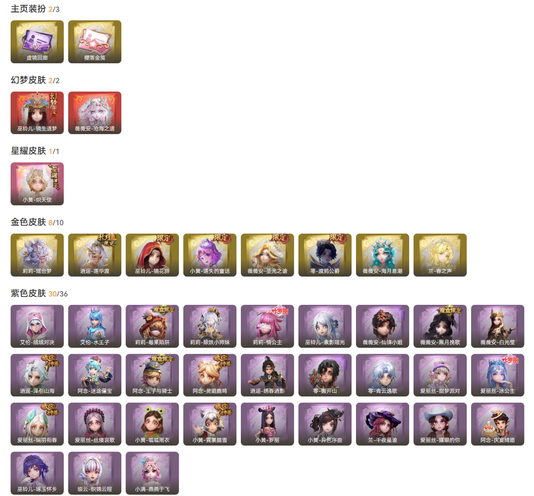 限制: 撤单率<68%才可租用此帐号装备描述:【满氪条2红1星耀8金33紫皮68道具皮肤59饰品】 星耀皮肤 小黄-炽天使 幻梦皮肤 巫铃儿-镜生遗梦、薇薇安-沧海之遗 金色皮肤 薇薇安-圣光之谕、小黄-遗失的童话、巫铃儿-镜花辞、逍遥-莲华渡、零-渡鸦公爵、莉莉-瑶台梦、薇薇安-海月息潮、兰-春之声 紫色皮肤 小黄-异色序曲、小黄-罗丽、小黄-霓裳踏雪、小黄-呱呱雨衣、爱丽丝-丝缕哀歌、爱丽丝-瑞羽衔春、爱丽丝-冰公主、零-青云逸歌、阿念-灵昭鹿鸣、阿念-王子与骑士、阿念-迷途僵宝、逍遥-泽引山海、逍遥-绣春逍影、薇薇安-白光莹、薇薇安-黑月挽歌、巫铃儿-素影瑶光、莉莉-情公主、莉莉-除妖小师妹、莉莉-莓果陷阱、艾伦-水王子、艾伦-绒绒对决、爱丽丝-甜梦派对、薇薇安-仙锋小姐、零-搬开山、兰-千夜星谕、阿念-庆宴绮愿、爱丽丝-耀眼的你、临云-织锦云程、巫铃儿-琢玉怀乡、小满-燕燕于飞