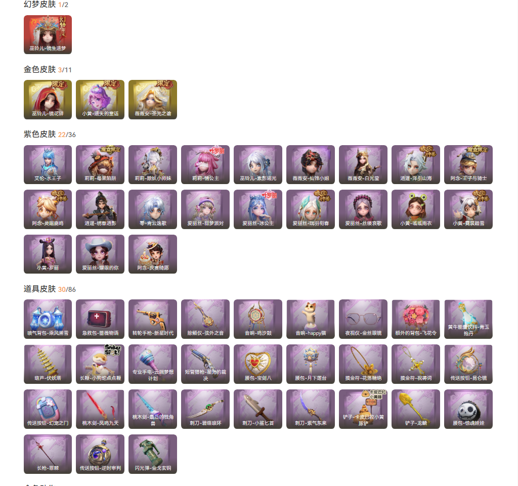 1红3金22紫30道具镜生梦遗镜花辞遗失的童话薇薇安圣光之逾非遗薇薇安逍遥白泽秀春逍遥超多皮