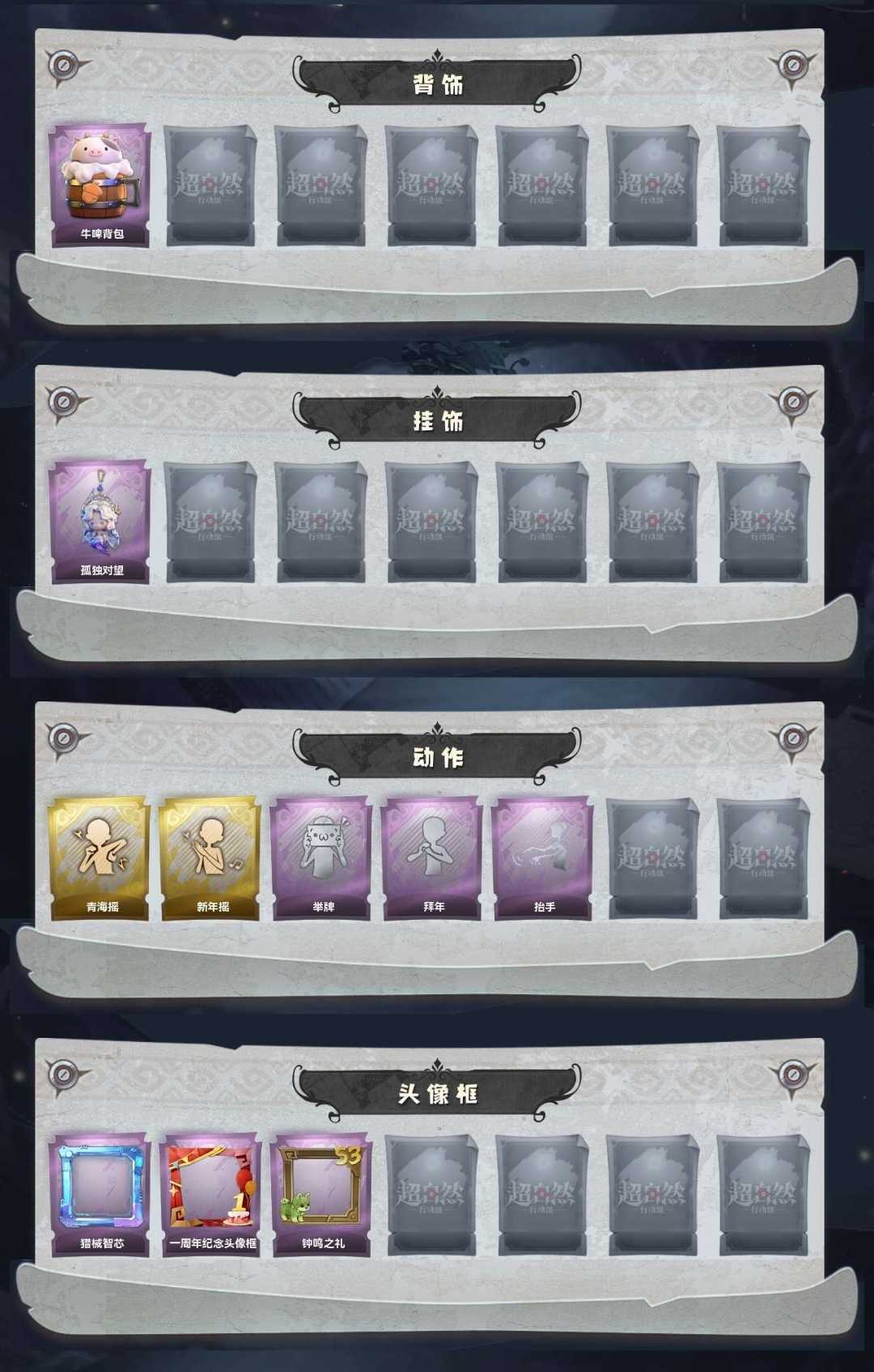 1金♉2紫♉渡鸦公爵♋庆宴绮愿♋耀眼的你⛎郁金春信⛎金戈玄铜♑牛啤背包♑孤独对望♉青海摇♉新年摇