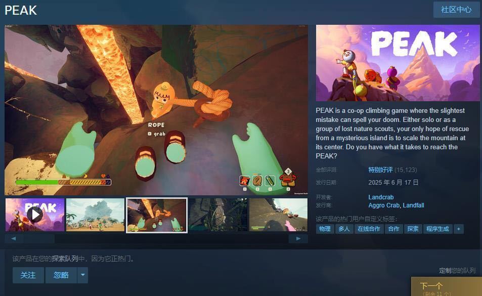 装备描述:《PEAK》终极版!攀岩游戏-好友能开通--已全部互加好友!直接联机!