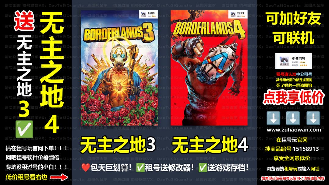 无主之地4+无主之地3❤️租4送3!♋包天巨划算!✅租号送修改器!✅送游戏存档!✅