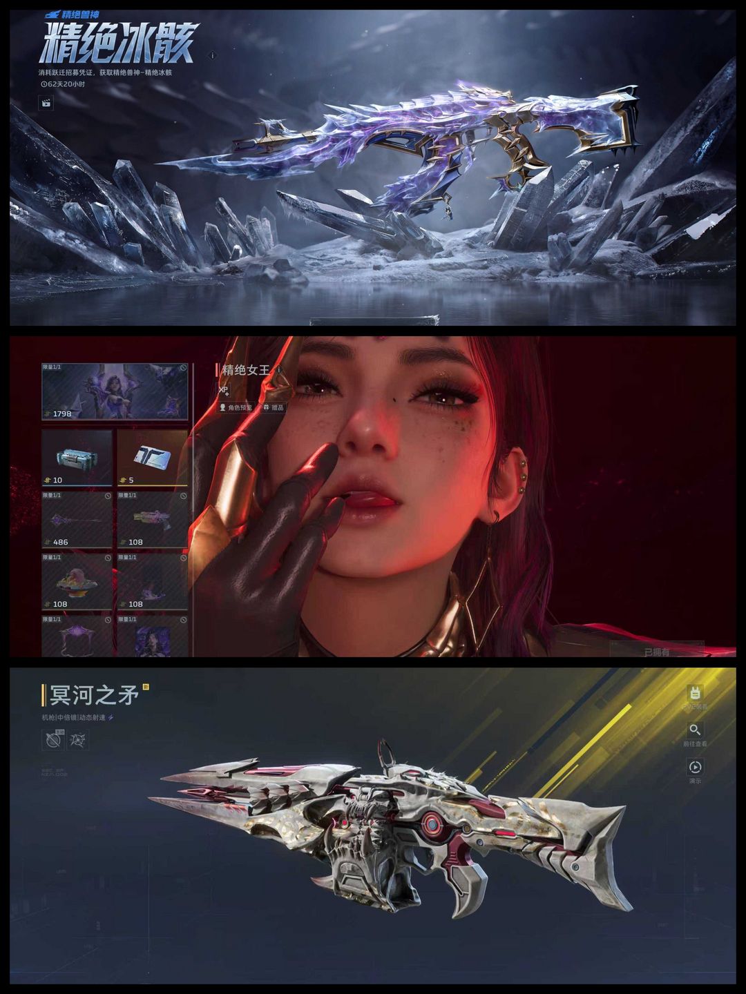 ★TOP1满配★精绝女王+精绝冰骸雪莉杨!兽神/冥河之矛+专属金插已解锁!全金插全满配❤️商城清空