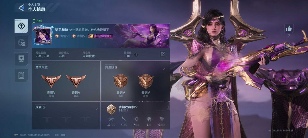 限制: 撤单率<50%才可租用此帐号装备描述:毁号行为涉及毁坏虚拟财产罪及计算机安全罪,请文明游戏素质游戏,让我们共建美好租号平台!请游戏局内保持文明,防止禁言影响他人游戏,祝您玩得愉快!