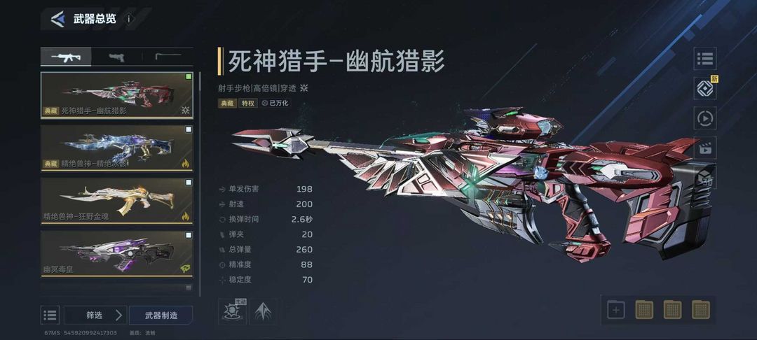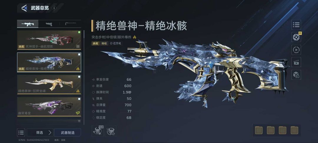 装备描述:精绝女王,死神兽神典藏,塔防88和98 4个皮肤陷阱,s1全刀全枪