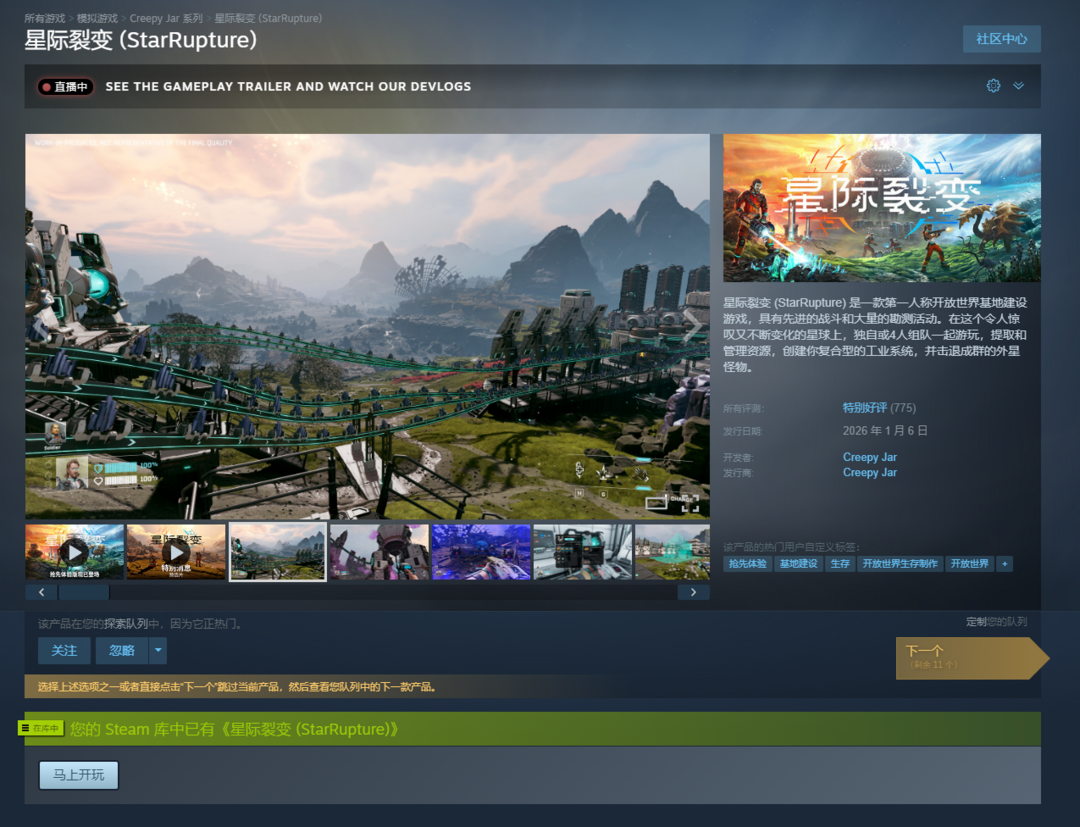 装备描述:星际裂变 (StarRupture) 是一款第一人称开放世界基地建设游戏,具有先进的战斗和大量的勘测活动。在这个令人惊叹又不断变化的星球上,独自或4人组队一起游玩,提取和管理资源,创建你复合型的工业系统,并击退成群的外星怪物。