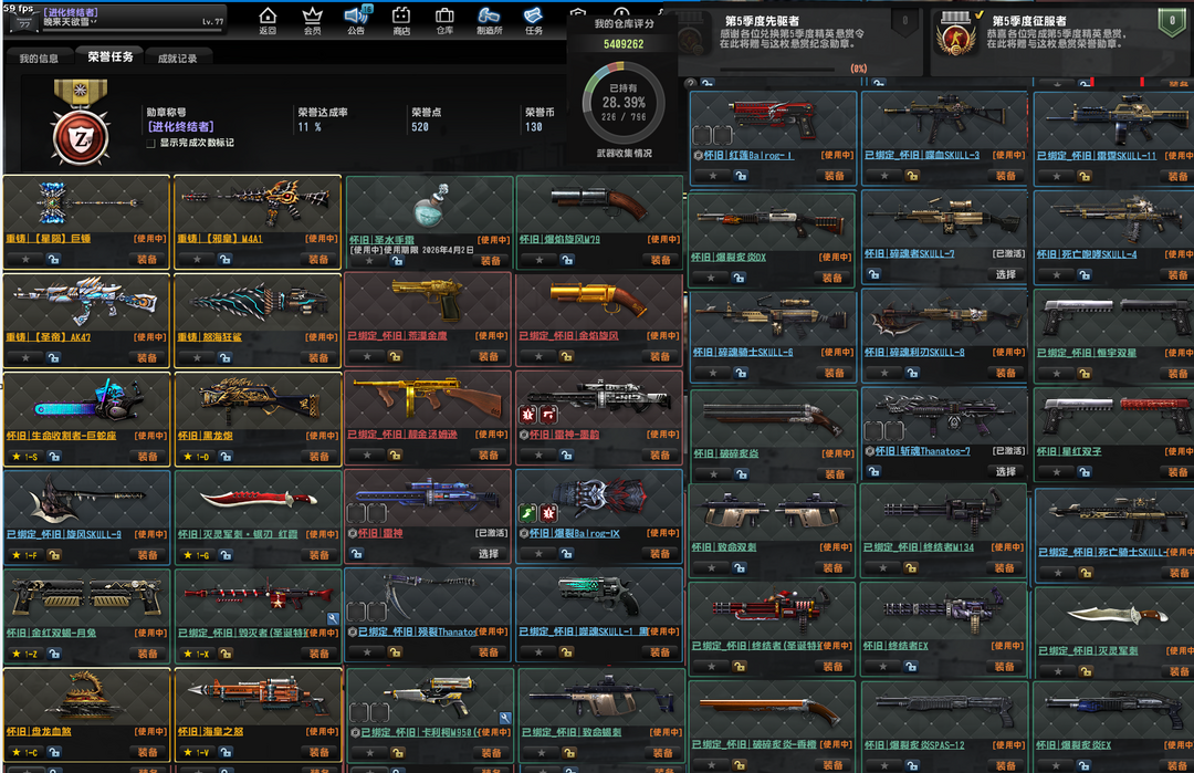 限制: 撤单率<70%才可租用此帐号装备描述:已经去黑雾!! 重铸星陨巨锤,邪皇,圣帝,怒海狂鲨,怀旧黑龙炮,生命收割者,海皇之怒,盘龙血煞,雷神, 荒漠金鹰,金红双蝎,旋风斧头,锯刃,死亡骑士,殒裂,卡利柯+8,致命双刺,圣诞毁灭者,圣诞终结者,终结者ex,爆裂炙炎DX,猎魂骑士ex,风魔啸天破吹风机,破碎炙焱,圣水手雷, 暗雷兽,光轮,合金,超兽,尤利乌斯+6,玩具先锋+5,黄金MG3,猎魂金骑,末日金骑+8,狂暴蒸汽+9,冰封圣骑+6,角弓,长柄镰刀,淬火蒸汽+6, 狂花乱舞,原石套,沙尘 贝伦,金星,丛林猛虎, 生化模式,怀旧模式,重铸模式 致命打击,极速飞奔,进化基因,屠戮之刃,战神祝福,生存基因,手雷补给