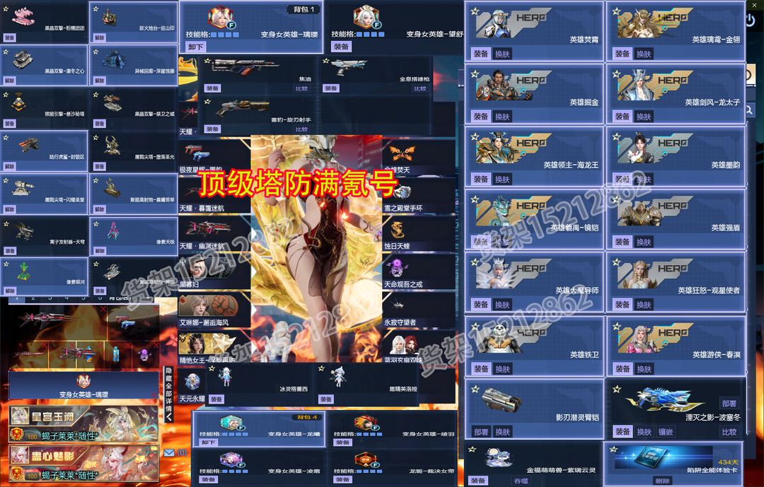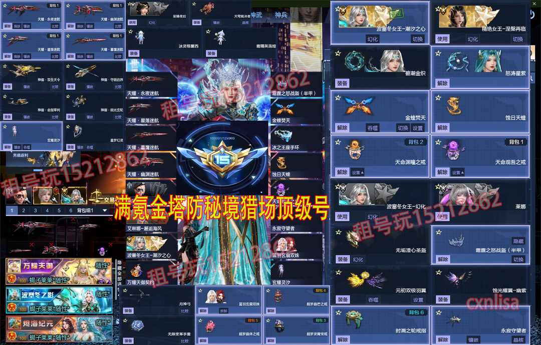 限制: 撤单率<40%才可租用此帐号装备描述:15级氪金图鉴〖安全模式可帮解除,点上号器的连系号主发安全码 等待会即可〗5转武装战术满生命,月神弓无限变革雷,秘境92关超10满聚变不朽连射,75格子,957高基础伤害,45星冰风光神武,战甲无限飞天+转换器局内任意切换】【✅新增道具介NEW✅】:霜精芙洛娅丨冰灵格蕾西【涅槃女王+波塞冬女王-潮夕之心,冰火金蝰翼,全套配件,传奇三女王】〖6888返利拉满,⑩+⑩神谕套全核心,元初双极羽翼,天命渊瞳戒,波塞冬女王-幻化〗【神御套、天耀套-全皮满核心10+10】【陆行虎鲨-回廊界域丨黑沼-重楼流光丨荆棘塔-水族碉堡】〖最新增伤角色:莱娜 | 天命观吾之戒〗【最新变身女英雄望舒+璃璎丨全息搭建枪+焦油】蓝雨玄扇双姝伴生灵丨不灭焰甲改+战甲转换器丨时溯之轮戒指丨丨最新头盔冰雪皇冠霜霆之怒战盔丨永夜迷航天耀全套皮肤丨 涅槃幻化,涅槃再临,蚀日天蝰,永寂守护者丨至臻夜后永久加超核帝冕名片丨丨超梦晶体戒丨超梦晶芒戒指丨