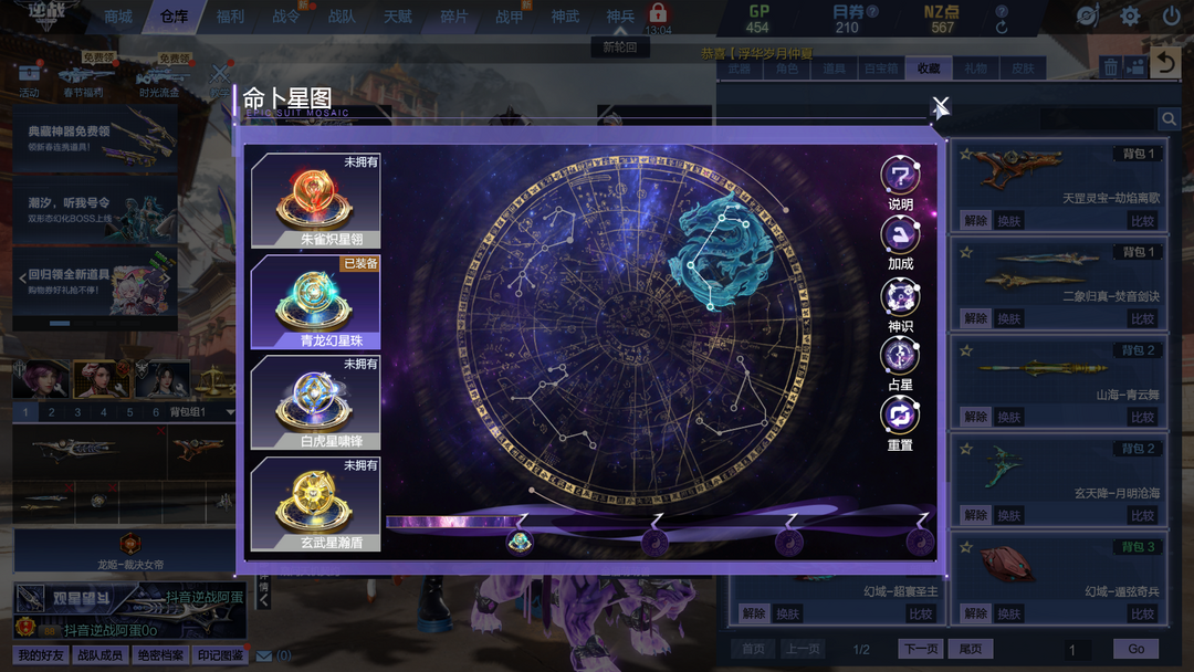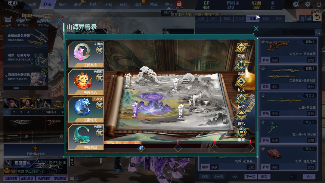 山海套4玉佩金福萌萌兽九件套可放Z 幻海套幻域套喳喳裂空兽5+5可放Z 神凰套天帝套1核心 天启左轮