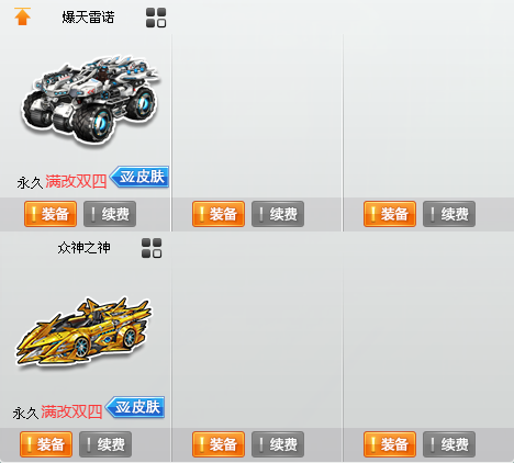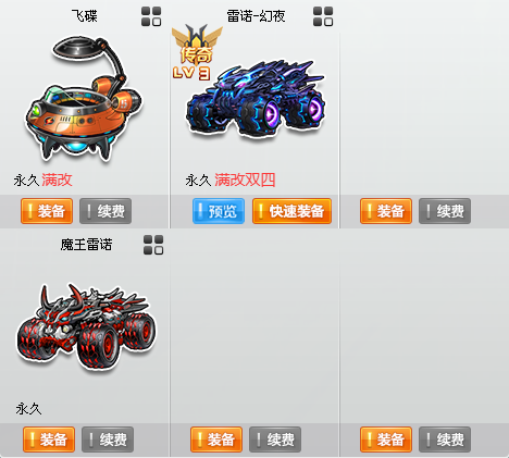 限制: 撤单率<70%才可租用此帐号装备描述:〓S〓2辆〓爆天雷诺、众神之神 〓A〓10辆〓 〓飞碟 〓骑宠〓1只〓神笔牛牛+10 〓其他〓10W魅力、2100W荣誉、紫钻7、皇族7 〓女〓180页套装〓绮丽梦游发饰 〓男〓50页套装〓