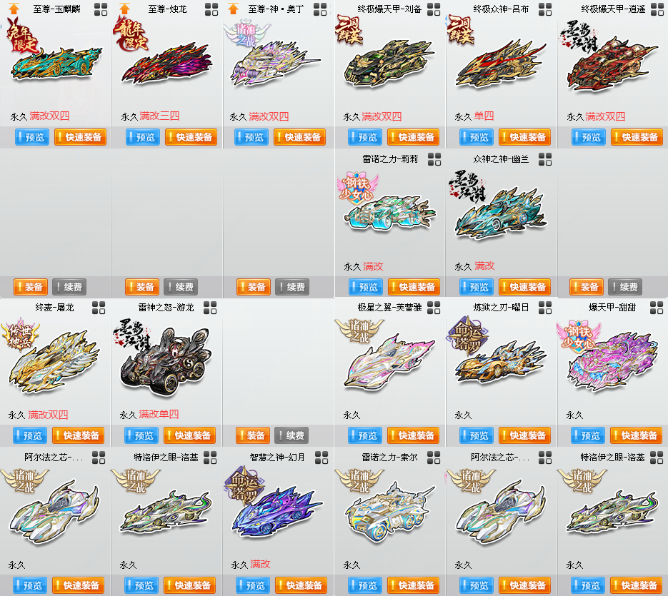 限制: 撤单率<70%才可租用此帐号装备描述:〓S〓21辆〓至尊火麒麟-玉麒麟、至尊影龙-烛龙、至尊爆天甲-神奥丁、智慧之神-幻月、终极爆天甲-逍遥/刘备、终极众神之神-吕布、终极麦凯伦-屠龙、爆天甲-奥丁、雷诺之力-莉莉、众神之神-幽兰、雷神之怒-游龙、黑域电魔-玄冥、 〓T2〓8辆〓序列未来LYR-燃冰球手、神威泰坦-福睦舰长5阶、奥莉娜-天穹战音5阶、源极-烟雨天青5阶/大河神卫5阶、悟空-齐天大圣5阶 〓A〓30辆〓雷诺-弑神4阶 〓骑宠〓2只〓小贵妃+10 〓其他〓5.5W魅力、200W荣誉、紫钻5、皇族5 〓女〓30页套装〓 〓男〓40页套装〓
