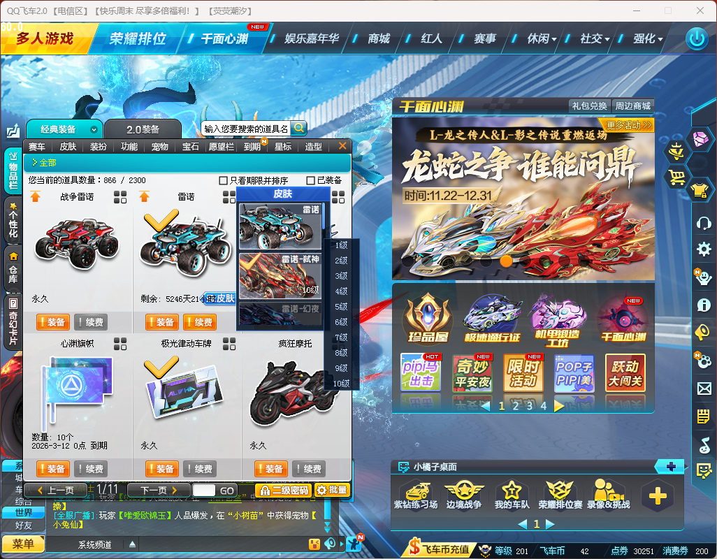 游戏区服:QQ飞车-电信-电信