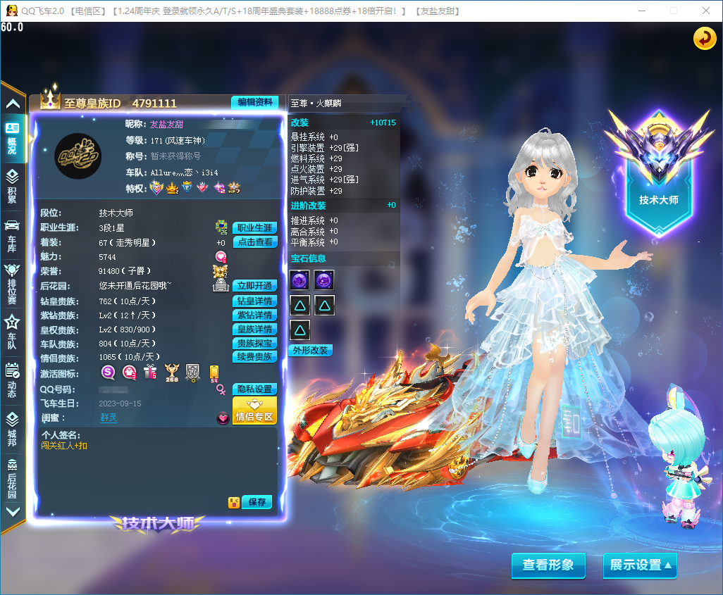 装备描述:至尊火麒麟★至尊神屠龙★T2雷霆机甲★雷诺【樱花皮肤】★战勋车【极光律动带皮】★劳斯莱斯