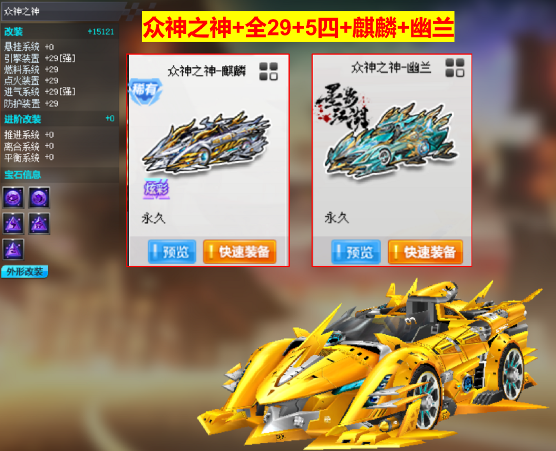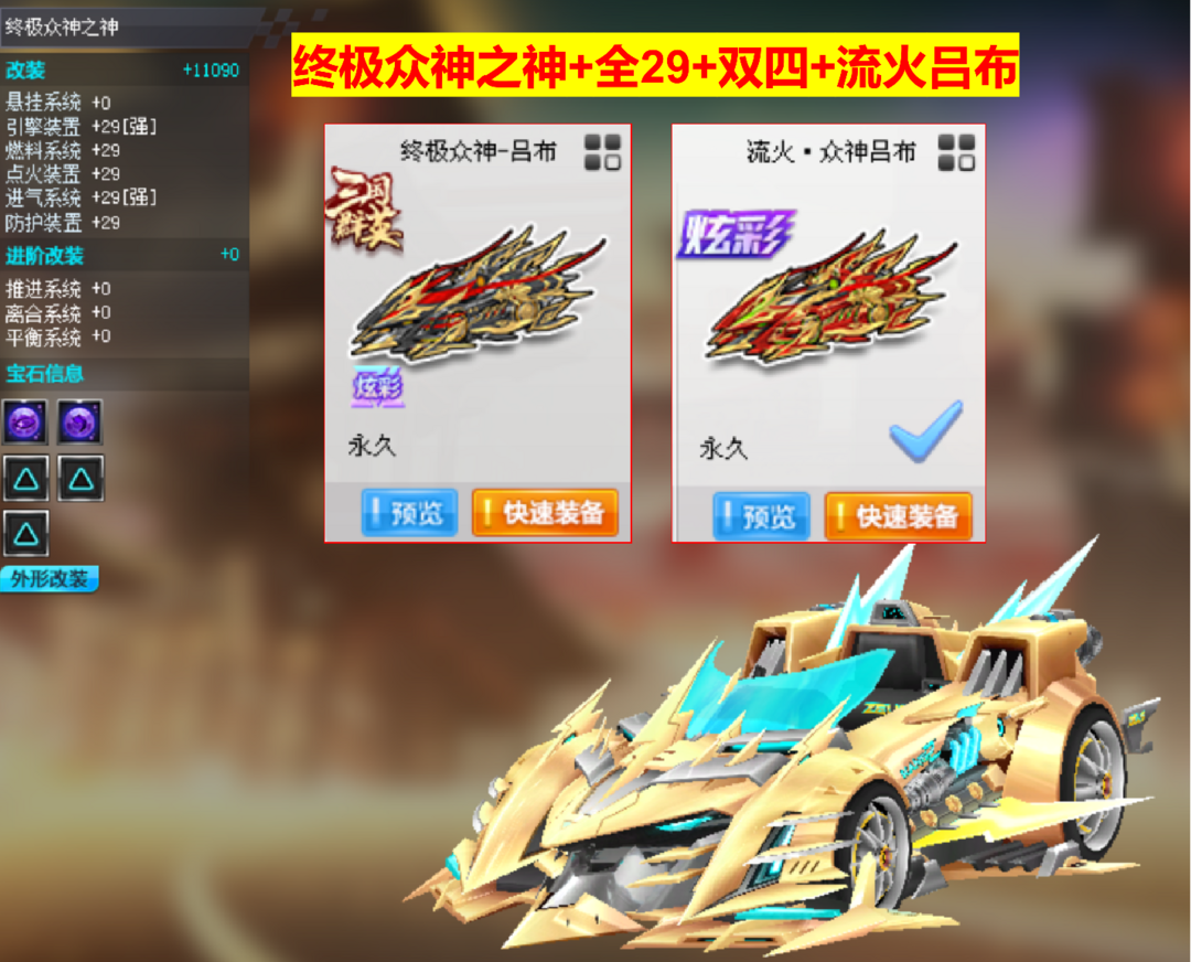 装备描述:【终极众神之神+吕布+倚天】 【众神之神+幽兰+麒麟】 【爆天甲+奥丁+甜甜】 【终极麦凯伦+屠龙】 【智慧之神+大耳狗】 【序列未来+曲棍球手】 【雷诺+樱花+幻梦】 【魔王雷诺】 【+10宠物六只】
