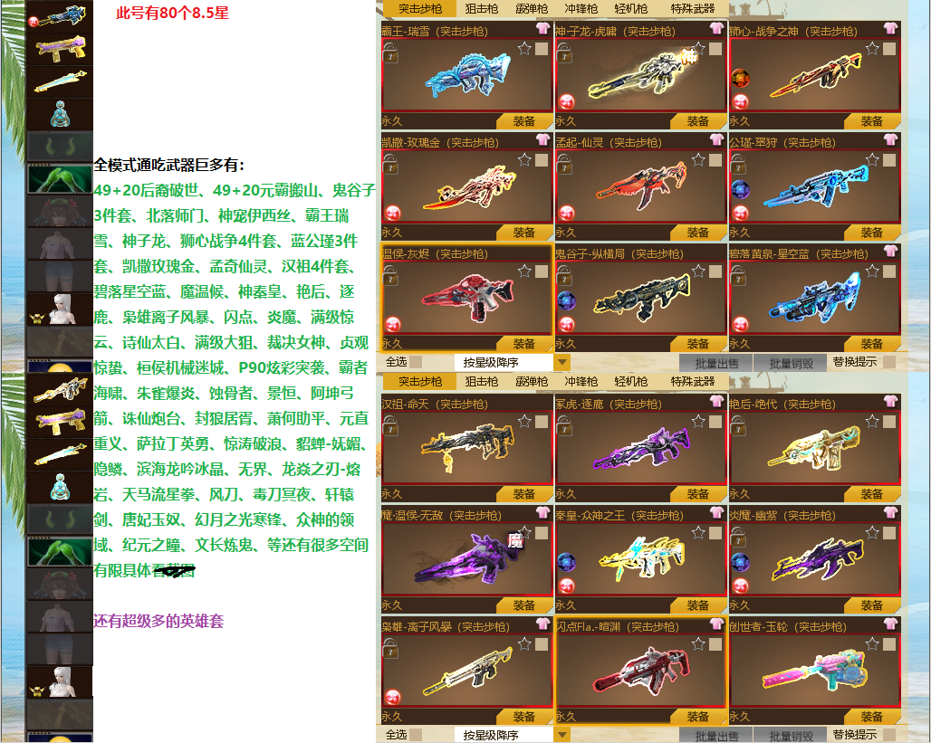 装备描述:全能号 上不去号的老板,看角色名,协助上号