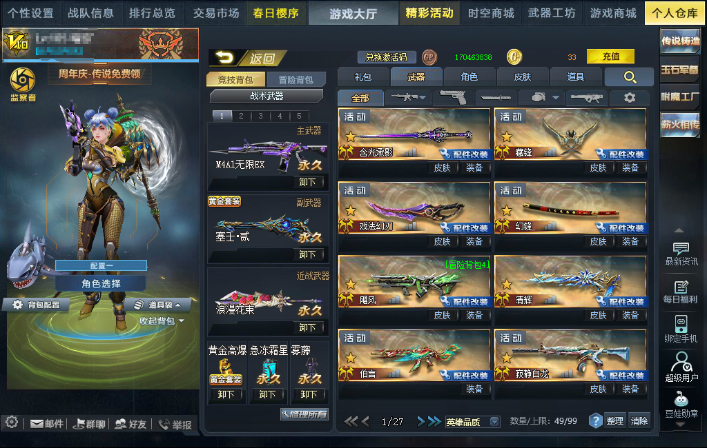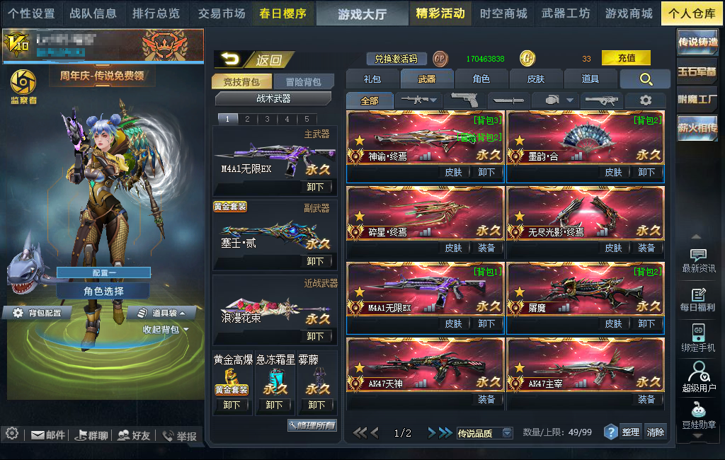 限制: 撤单率<60%才可租用此帐号装备描述:刀战,嘉年华,天花板,怀旧。三花束,爆破质量号。禁止通行,冰河,戏法,幻锋月华影生樱落,喜欢的可以收藏。V10满900w飓风11传墨韵合⭐神谕碎星无尽终焉主宰无限紫水晶屠魔⭐魅影风神撼天贰⭐潘多拉白骨夫人