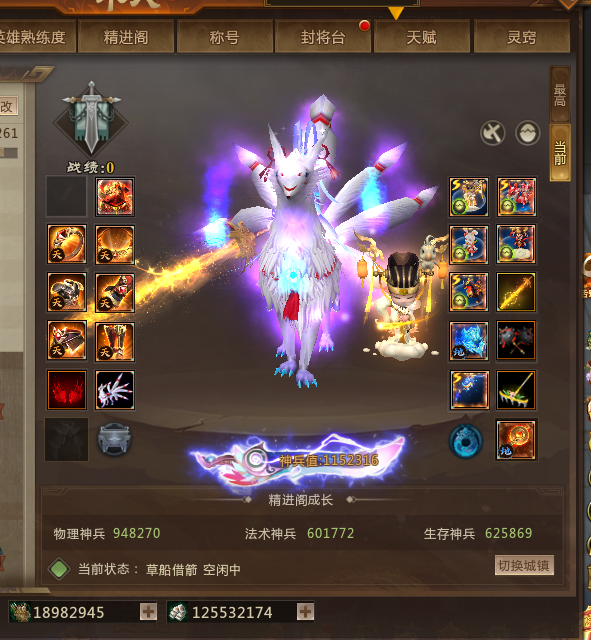 限制: 租号5次及以上 |装备描述:【幻神】草船幻神九尾武器神兵115万天魂套 华翠坐翅 5诸天灭2星灵 幻神九尾熊猫蝎子万象狮子夜光翼 一亿兵粮
