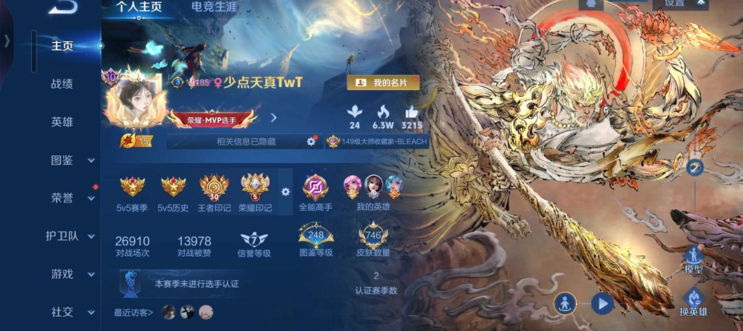 极品近满皮女号 线条小狗 孙悟空无相 凯神罪♈22典藏 商城新皮全清空+⚡满无双满传说满限定等