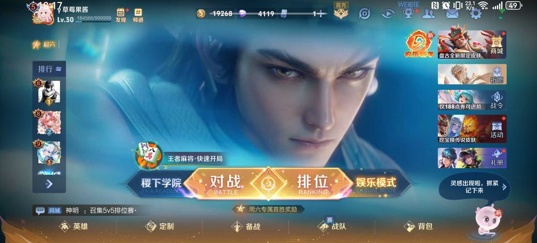 游戏区服:王者荣耀-QQ安卓-QQ账号