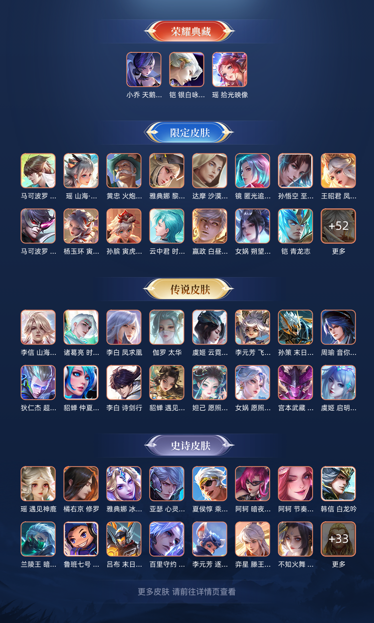 李白无双,貂蝉慕夏,甄姬无双皮,瑶典藏还有其他皮肤
