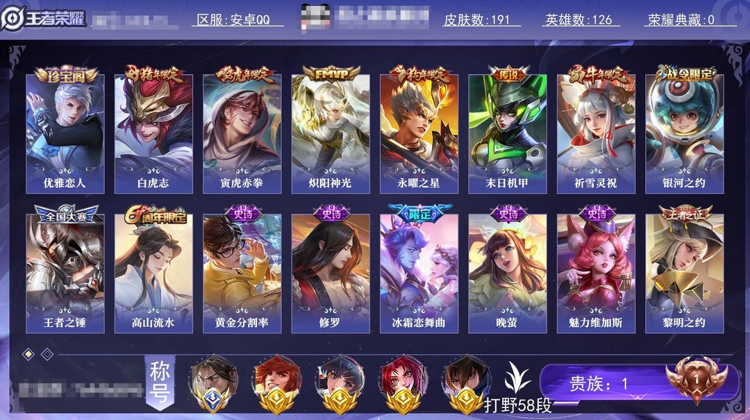 游戏区服:王者荣耀-QQ安卓-QQ账号